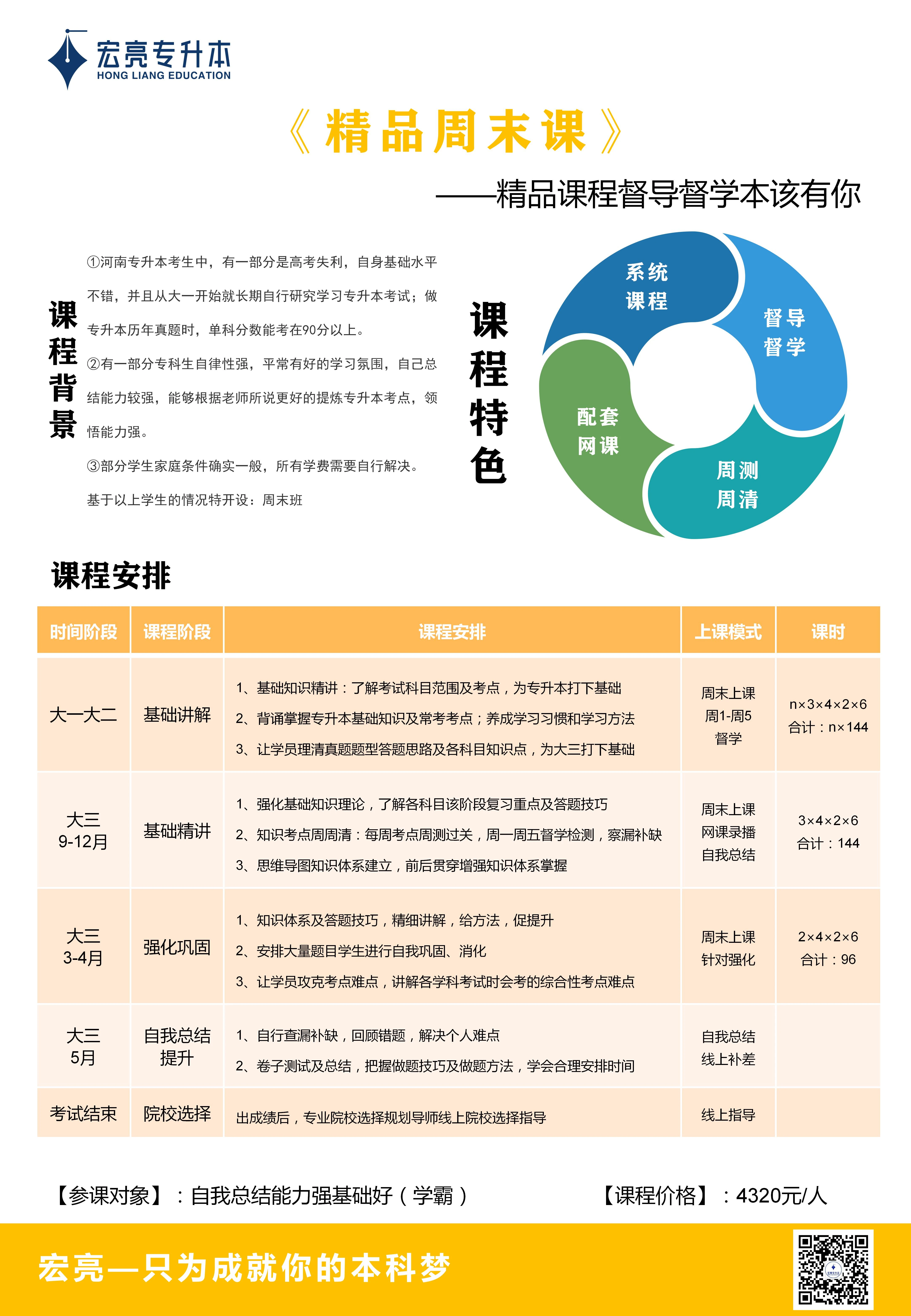 1. 大一学年至大二学年周末课 2. 大三下半学期(3/4/5)全日制 |